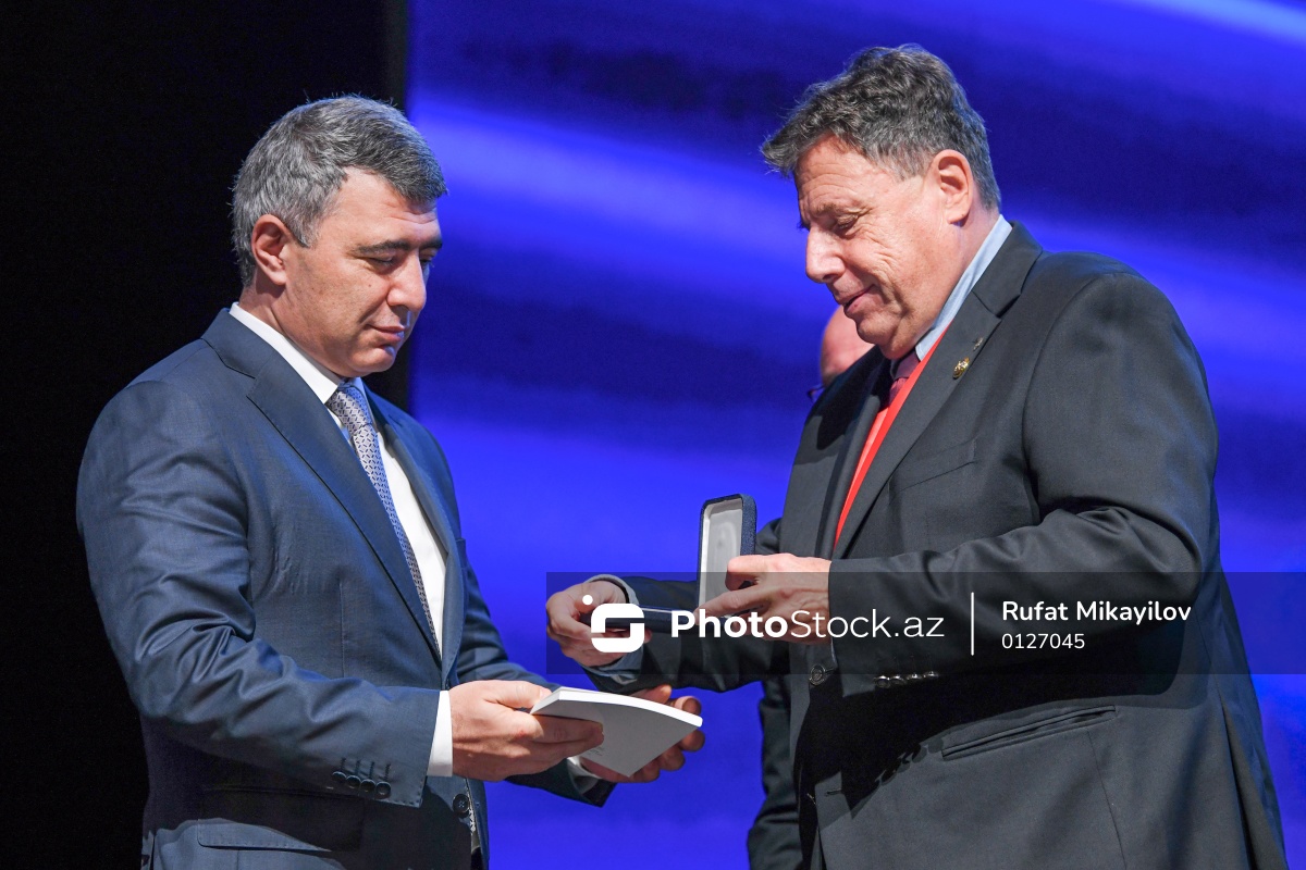 "Məhkəmə hakimiyyəti və dövlətin digər iki qolu arasında münasibətlər" mövzusunda beynəlxalq konfransda Azərbaycan Ali Məhkəməsinin sədri İnam Kərimov (sol) Beynəlxalq Hakimlər Assosiasiyası tərəfindən təltif edilib. Assosiasiyasının prezidenti Duro Sessa (sağ) xüsusi hazırlanmış medalı ona təqdim edib.