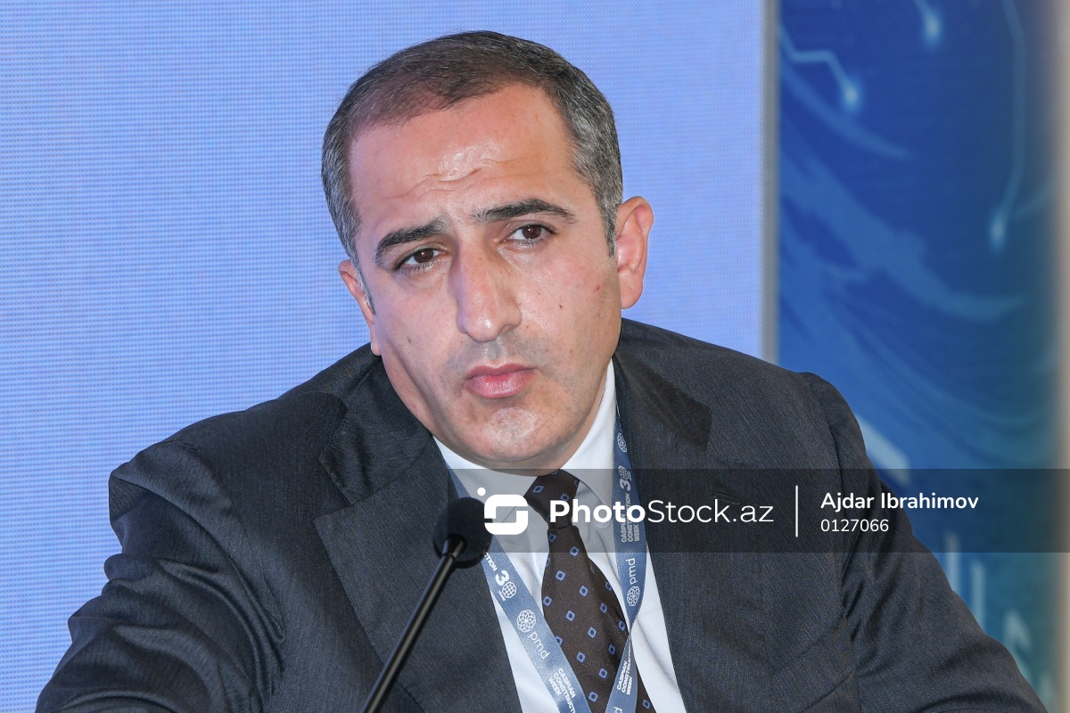 Bakı Ekspo Mərkəzində keçirilən "Rebuild Karabakh-2025" sərgisində iştirak edən “Tabaterra” MMC-nin direktoru Elman Cavanşir.