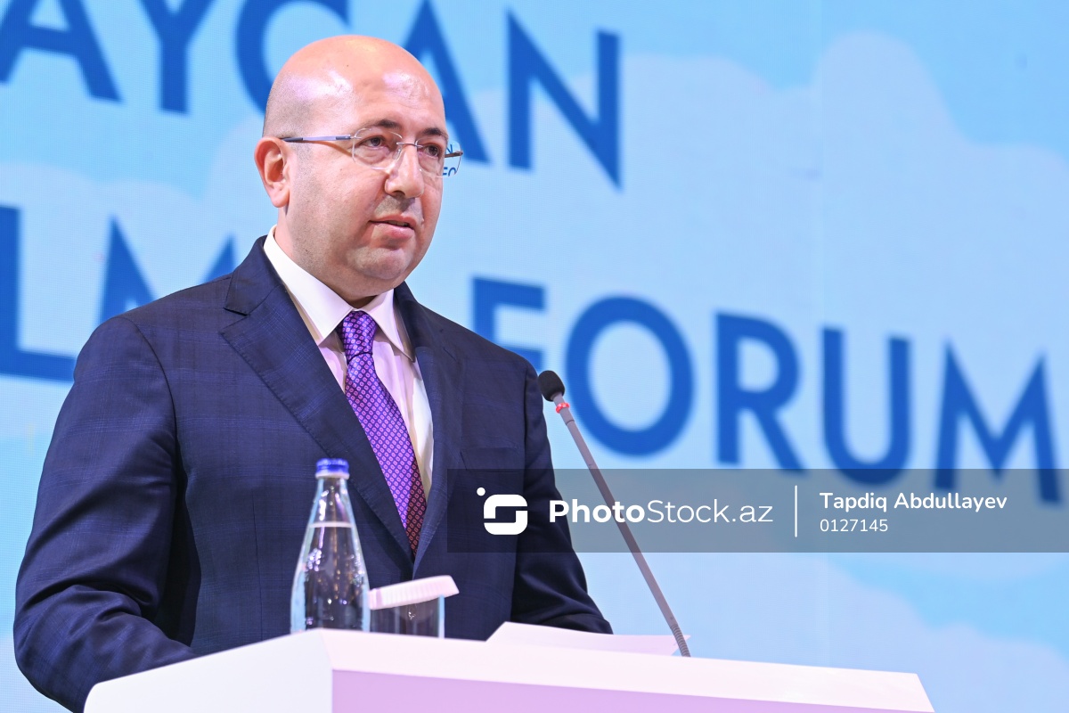 III Azərbaycan Milli Şəhərsalma Forumunda çıxış edən Dövlət Şəhərsalma və Arxitektura Komitəsinin sədri Anar Quliyev.