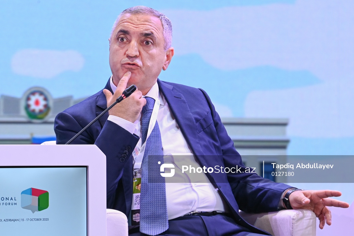 III Azərbaycan Milli Şəhərsalma Forumunda çıxış edən Xankəndi şəhərində, Ağdərə və Xocalı rayonlarında Azərbaycan Respublikası Prezidentinin xüsusi nümayəndəsi Elçin Yusubov.
