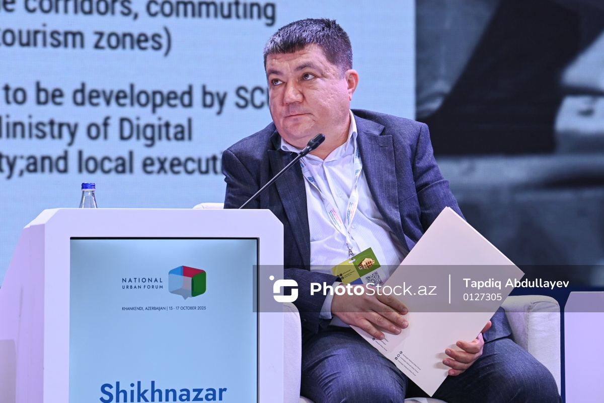 III Azərbaycan Milli Şəhərsalma Forumunda iştirak edən Özbəkistanın Mənzil Tikintisi və Kommunal Təsərrüfat Nazirliyinin Urbanizasiya Mərkəzinin direktoru Şihnazar Atacanov.