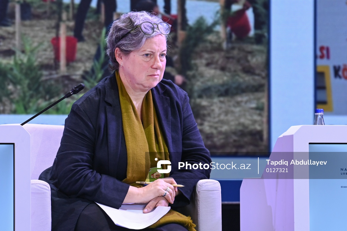 III Azərbaycan Milli Şəhərsalma Forumunda çıxış edən BMT Məskunlaşma Proqramının regionlararası məsləhətçisi Katya Şafer.
