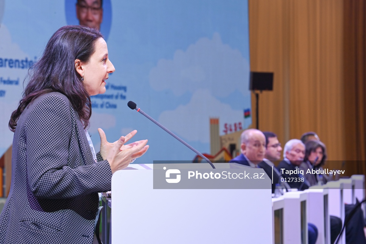 III Azərbaycan Milli Şəhərsalma Forumunda çıxış edən BMT Məskunlaşma Proqramının Torpaq, mənzil və sığınacaq şöbəsinin rəhbəri Ombretta Tempra.