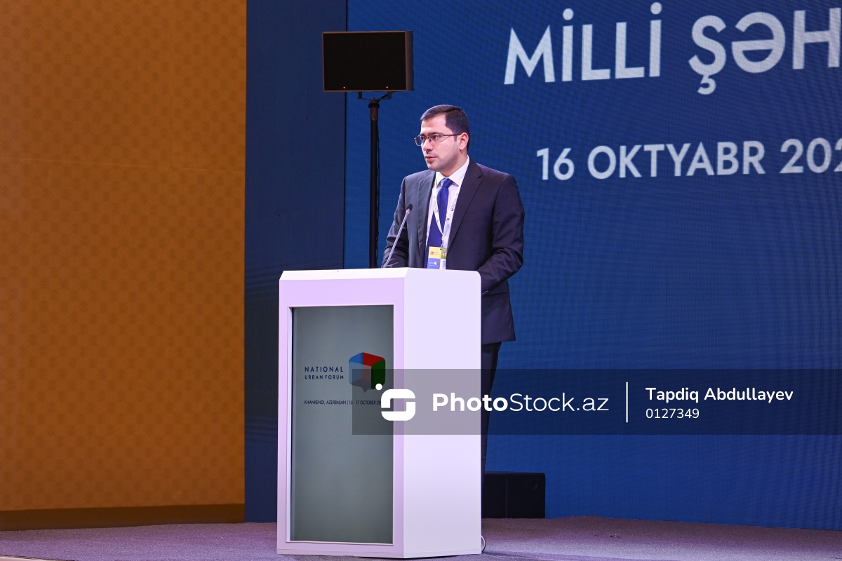III Azərbaycan Milli Şəhərsalma Forumunda çıxış edən MİDA-nın Aparat rəhbəri Fərman Qurbanlı.