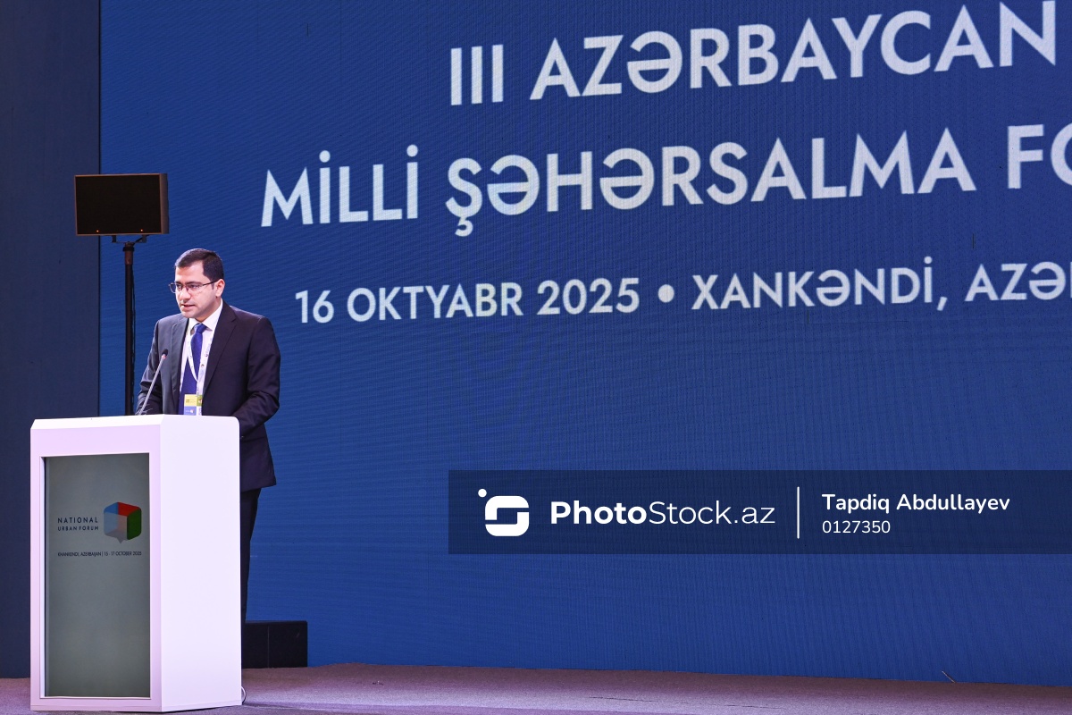 III Azərbaycan Milli Şəhərsalma Forumunda çıxış edən MİDA-nın Aparat rəhbəri Fərman Qurbanlı.