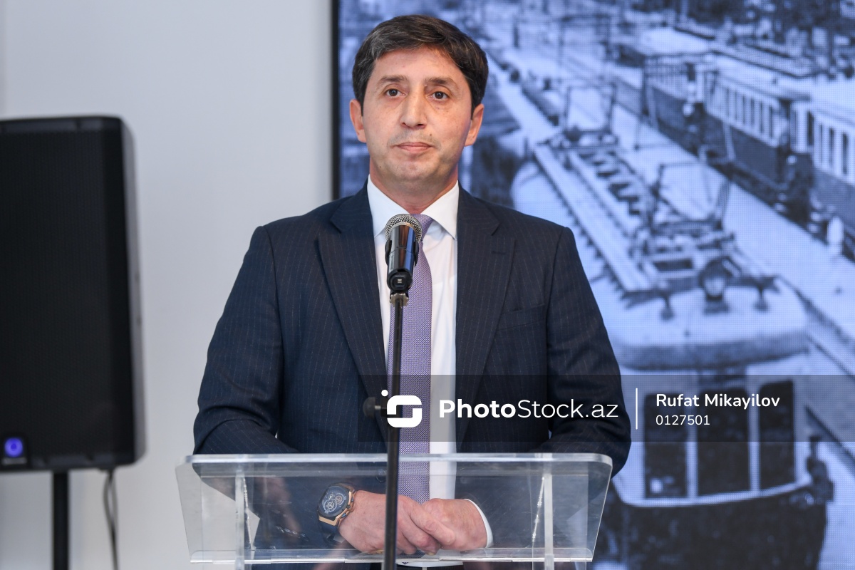 “Qara qızılın saldığı dəmir yollar” adlı fotosərginin açılışında çıxış edən "Balakhani Operating Company LTD"nin rəhbəri Rövşən Rzayev.