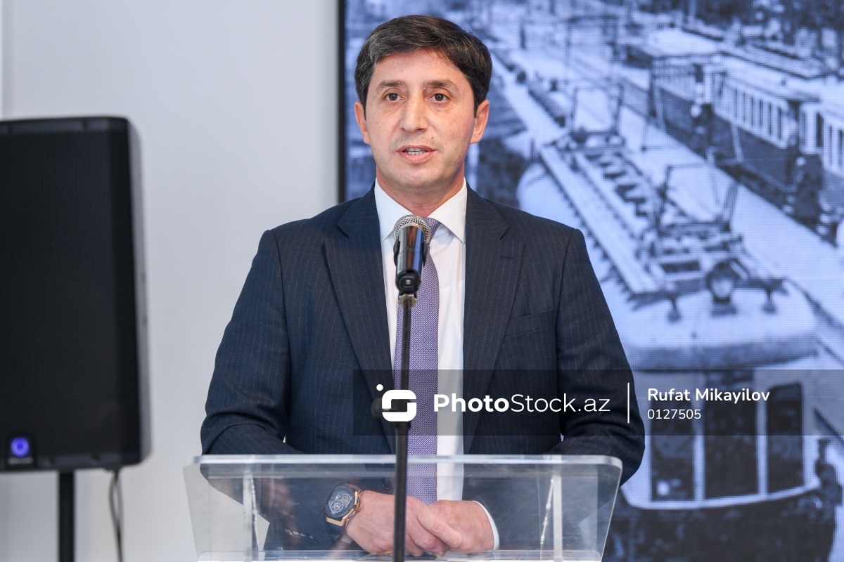 “Qara qızılın saldığı dəmir yollar” adlı fotosərginin açılışında çıxış edən "Balakhani Operating Company LTD"nin rəhbəri Rövşən Rzayev.