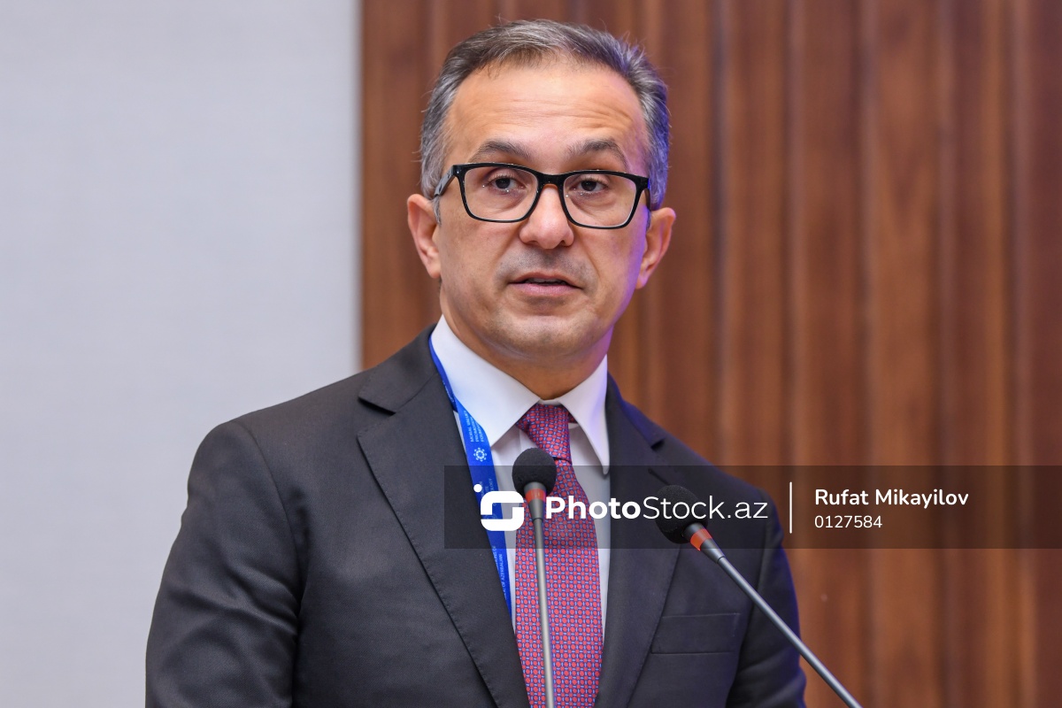 “Müasir din təhsili modelləri: mənəvi dəyərlər və qlobal çağırışlar kontekstində” beynəlxalq simpoziumda çıxış edən Azərbaycan Respublikasının Dini Qurumlarla İş üzrə Dövlət Komitəsinin sədri Ramin Məmmədov.