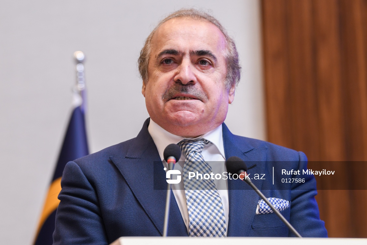 “Müasir din təhsili modelləri: mənəvi dəyərlər və qlobal çağırışlar kontekstində” beynəlxalq simpoziumda çıxış edən Azərbaycan Respublikası Milli Məclisi sədrinin müavini Rafael Hüseynov.