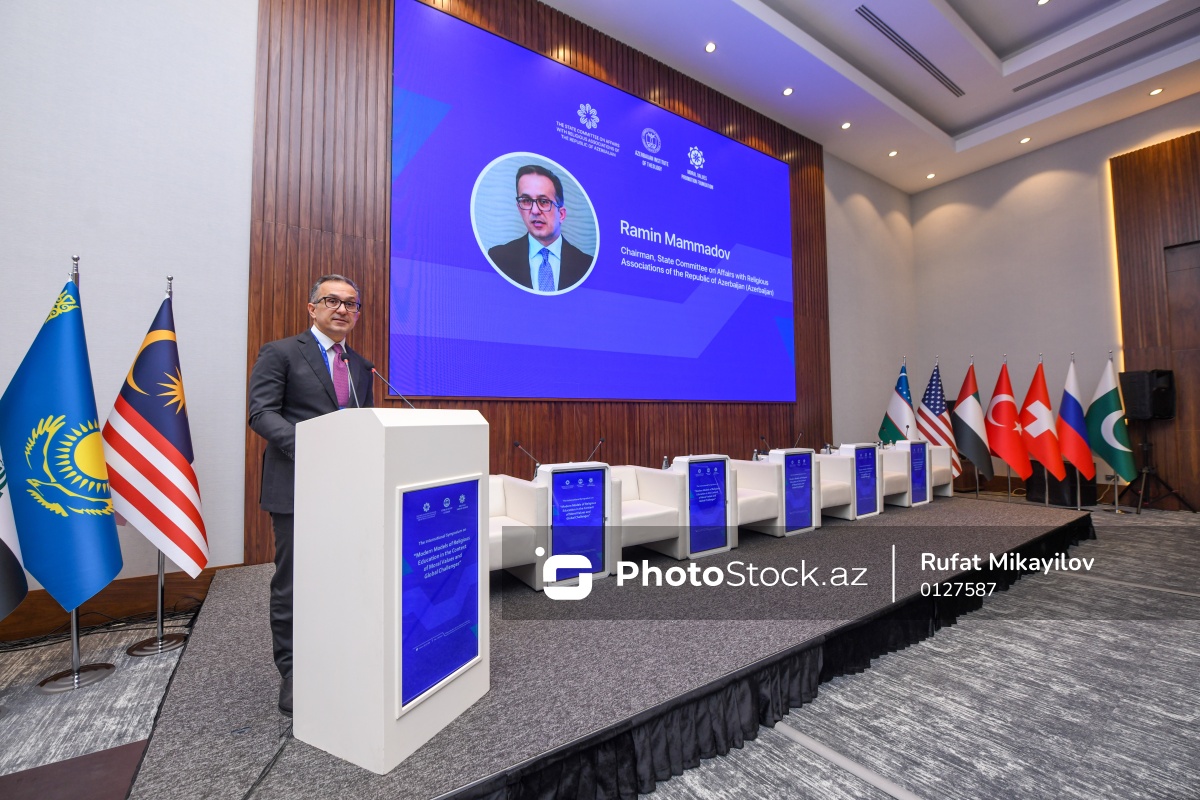 “Müasir din təhsili modelləri: mənəvi dəyərlər və qlobal çağırışlar kontekstində” beynəlxalq simpoziumda çıxış edən Azərbaycan Respublikasının Dini Qurumlarla İş üzrə Dövlət Komitəsinin sədri Ramin Məmmədov.