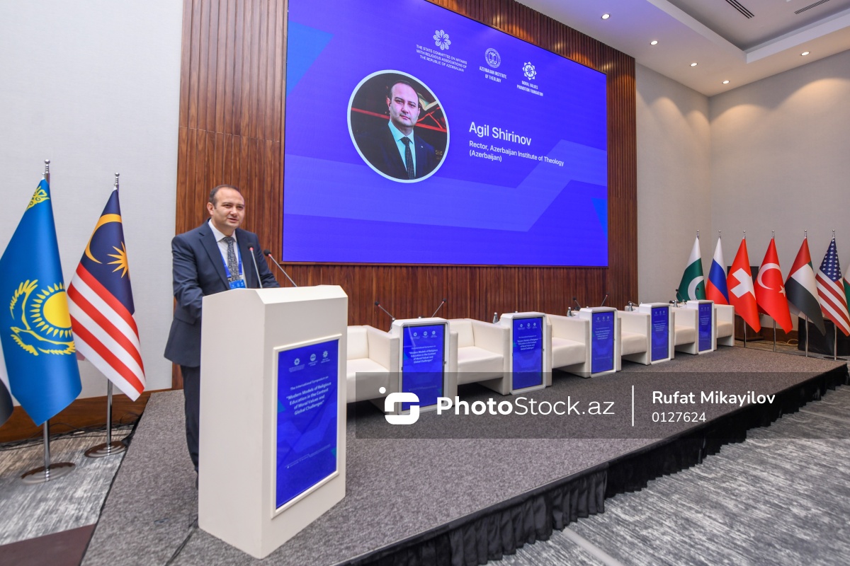 “Müasir din təhsili modelləri: mənəvi dəyərlər və qlobal çağırışlar kontekstində” beynəlxalq simpoziumda çıxış edən Azərbaycan İlahiyyat İnstitutunun rektoru Aqil Şirinov.