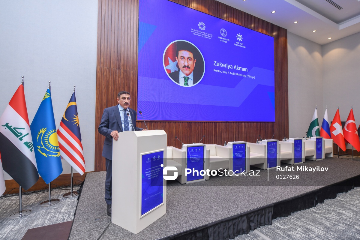 “Müasir din təhsili modelləri: mənəvi dəyərlər və qlobal çağırışlar kontekstində” beynəlxalq simpoziumda çıxış edən Kilis 7 Aralık Universitetinin rektoru Zekeriya Akman.