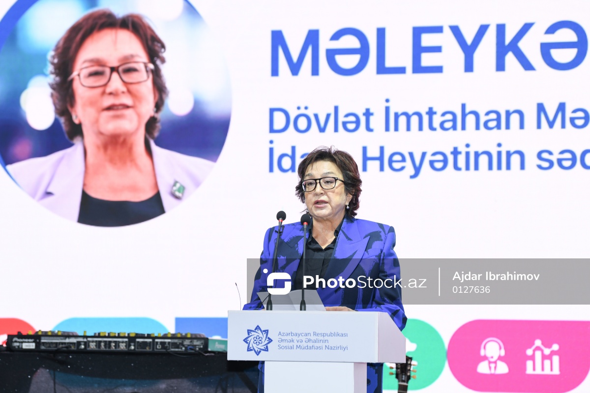 "PeşəFest-2025"in yekun tədbirində çıxış edən Dövlət İmtahan Mərkəzinin İdarə Heyətinin sədri Məleykə Abbaszadə.