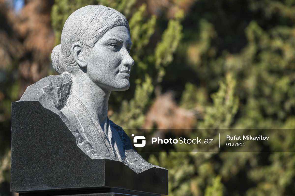 AZAL təyyarəsinin qəzaya uğraması nəticəsində həlak olan Milli Qəhrəman Hökumə Əliyevanın II Fəxri xiyabanda yerləşən büstü.
