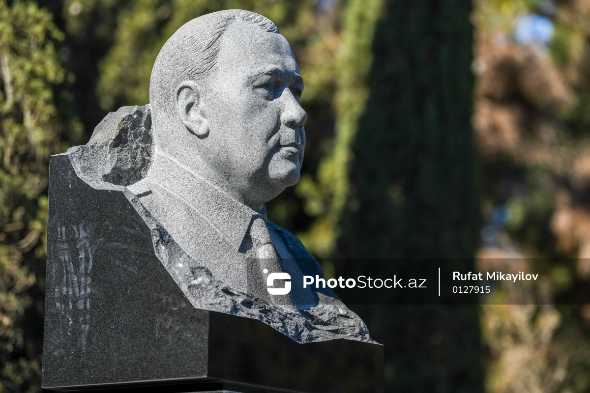 AZAL təyyarəsinin qəzaya uğraması nəticəsində həlak olan Milli Qəhrəman İqor Kşnyakinin II Fəxri xiyabanda yerləşən büstü.