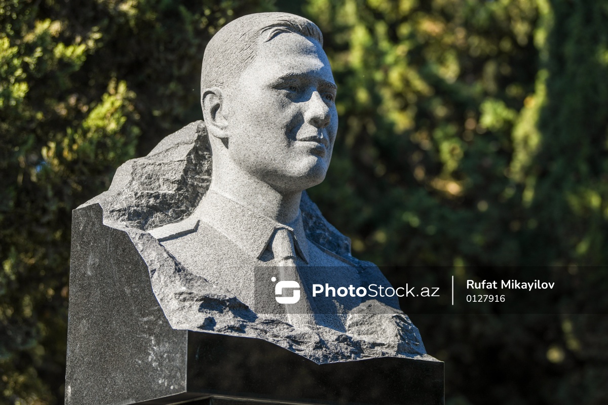 AZAL təyyarəsinin qəzaya uğraması nəticəsində həlak olan Milli Qəhrəman Aleksandr Kalyaninovun II Fəxri xiyabanda yerləşən büstü.