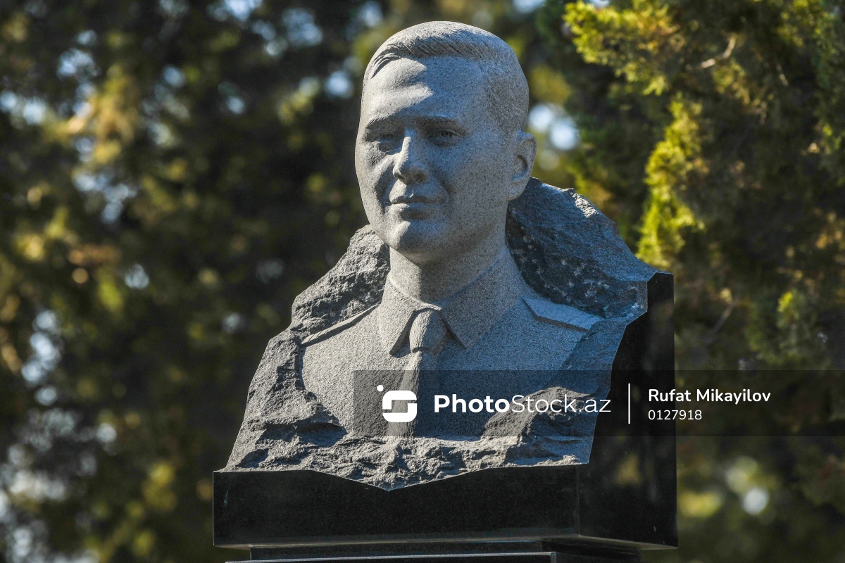 AZAL təyyarəsinin qəzaya uğraması nəticəsində həlak olan Milli Qəhrəman Aleksandr Kalyaninovun II Fəxri xiyabanda yerləşən büstü.