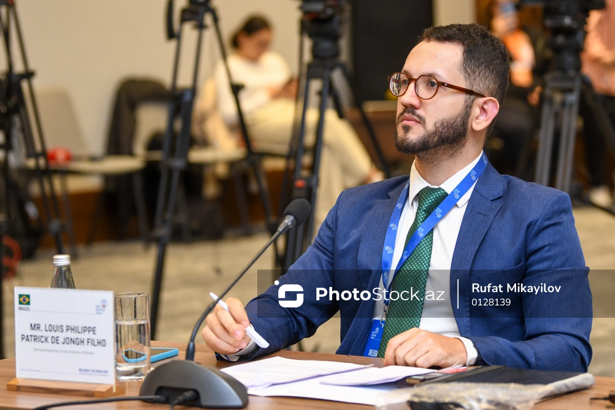 Bakıda keçirilən "Belçika müstəmləkəçiliyi: Tanınma və Məsuliyyət" adlı beynəlxalq konfransda iştirak edən Braziliyadan olan fəlsəfə doktoru Luis Filip Patrik De Yonq Filho.