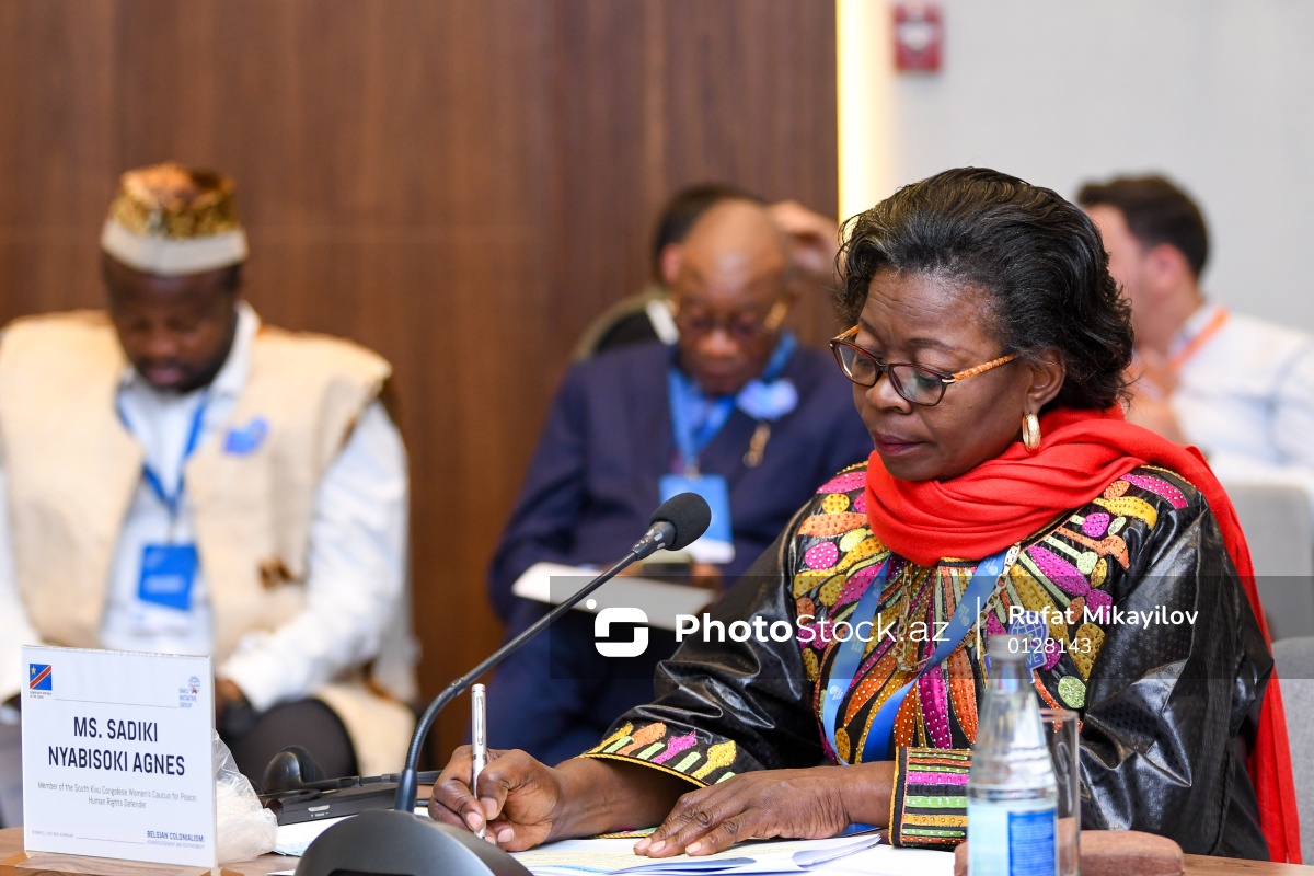 Bakıda keçirilən "Belçika müstəmləkəçiliyi: Tanınma və Məsuliyyət" adlı beynəlxalq konfransda iştirak edən "Cənubi Kivuya sülh naminə" qadınlar təşkilatının üzvü, insan hüquqları müdafiəçisi Sadiki Nyabisoki Aqnes.
