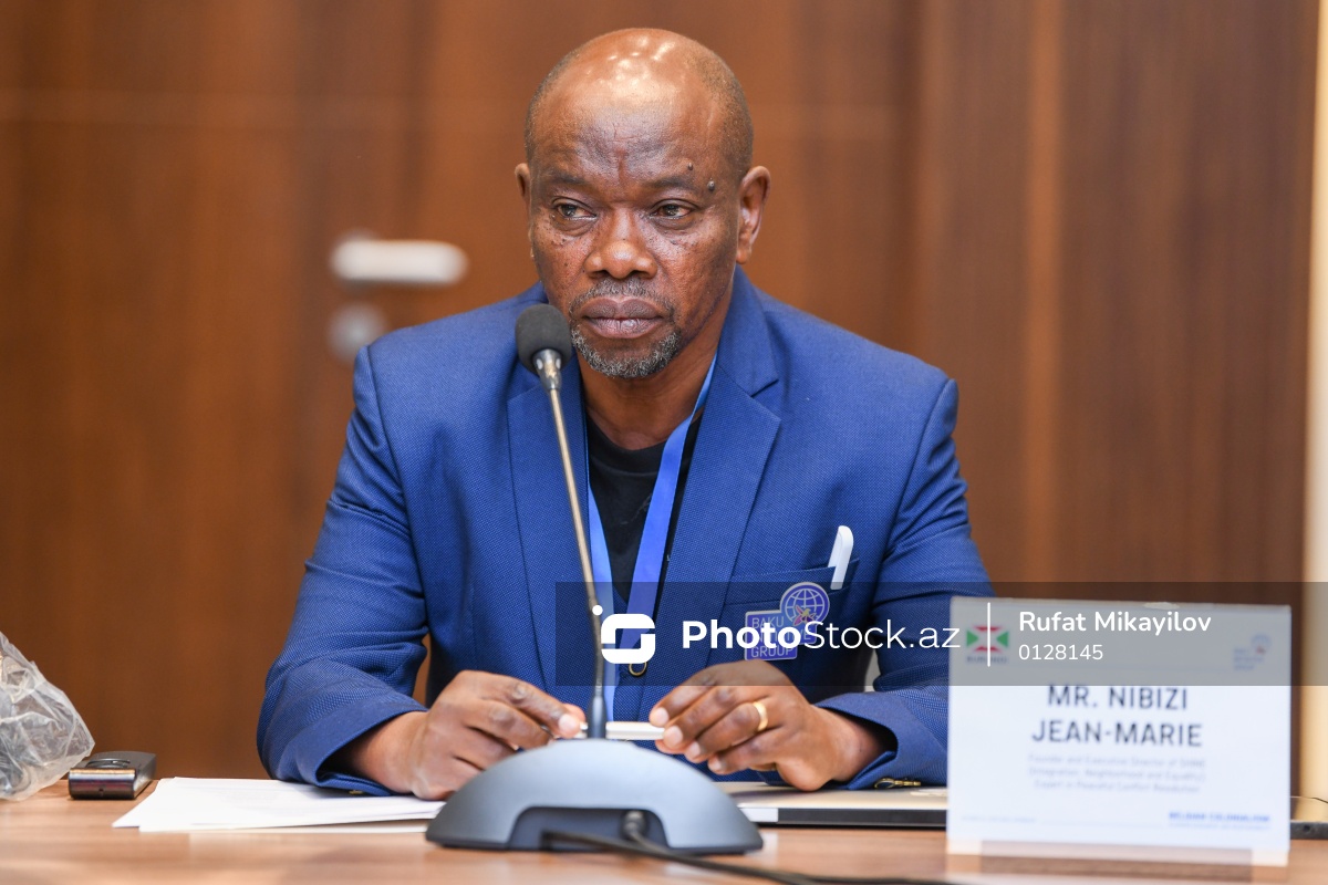 Bakıda keçirilən "Belçika müstəmləkəçiliyi: Tanınma və Məsuliyyət" adlı beynəlxalq konfransda iştirak edən SHINE (İnteqrasiya, Qonşuluq və Bərabərlik) Təşkilatının təsisçisi və icraçı direktoru burundili Jan-Mari Nibizi.