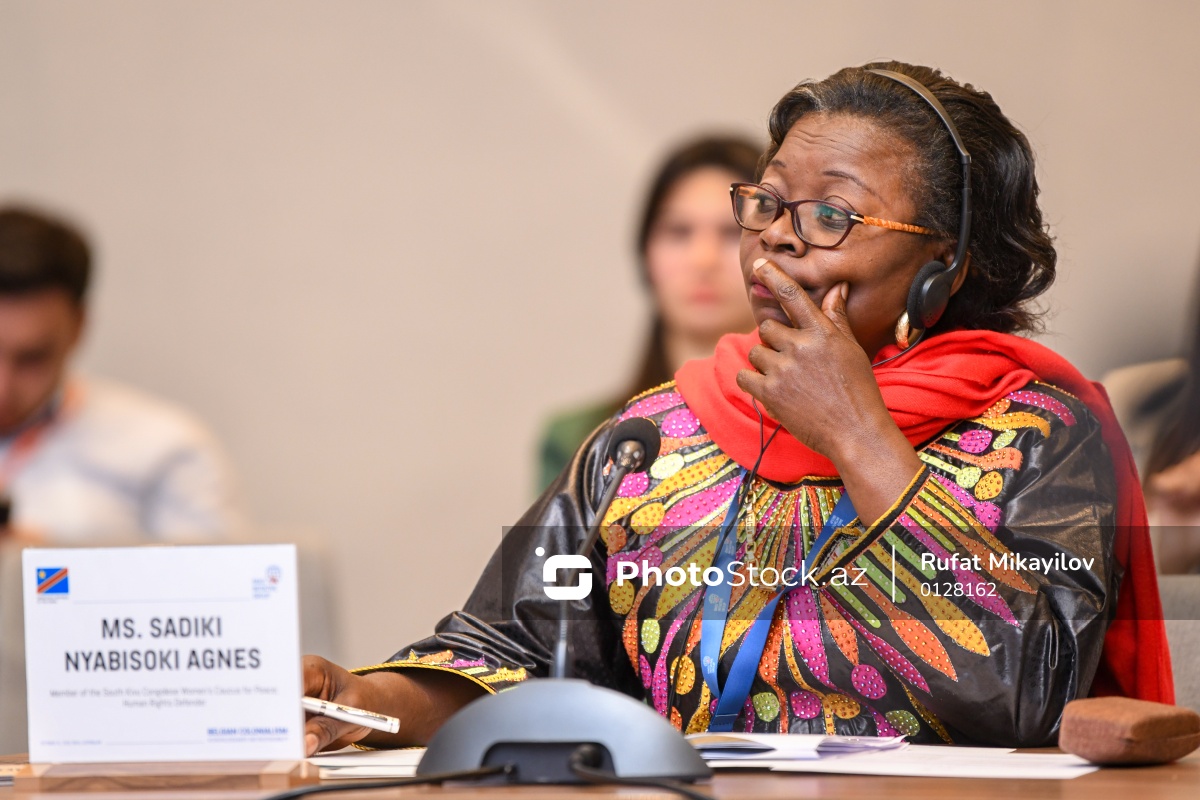 Bakıda keçirilən "Belçika müstəmləkəçiliyi: Tanınma və Məsuliyyət" adlı beynəlxalq konfransda iştirak edən "Cənubi Kivuya sülh naminə" qadınlar təşkilatının üzvü, insan hüquqları müdafiəçisi Sadiki Nyabisoki Aqnes.