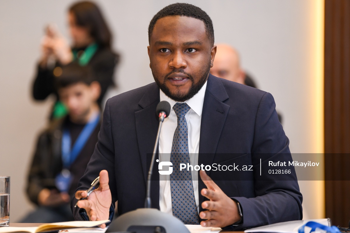 Bakıda keçirilən "Belçika müstəmləkəçiliyi: Tanınma və Məsuliyyət" adlı beynəlxalq konfransda iştirak edən BMT-nin Narkotiklər və Cinayətkarlıqla Mübarizə İdarəsində layihə üzrə mütəxəssis Cessi Mudiay.