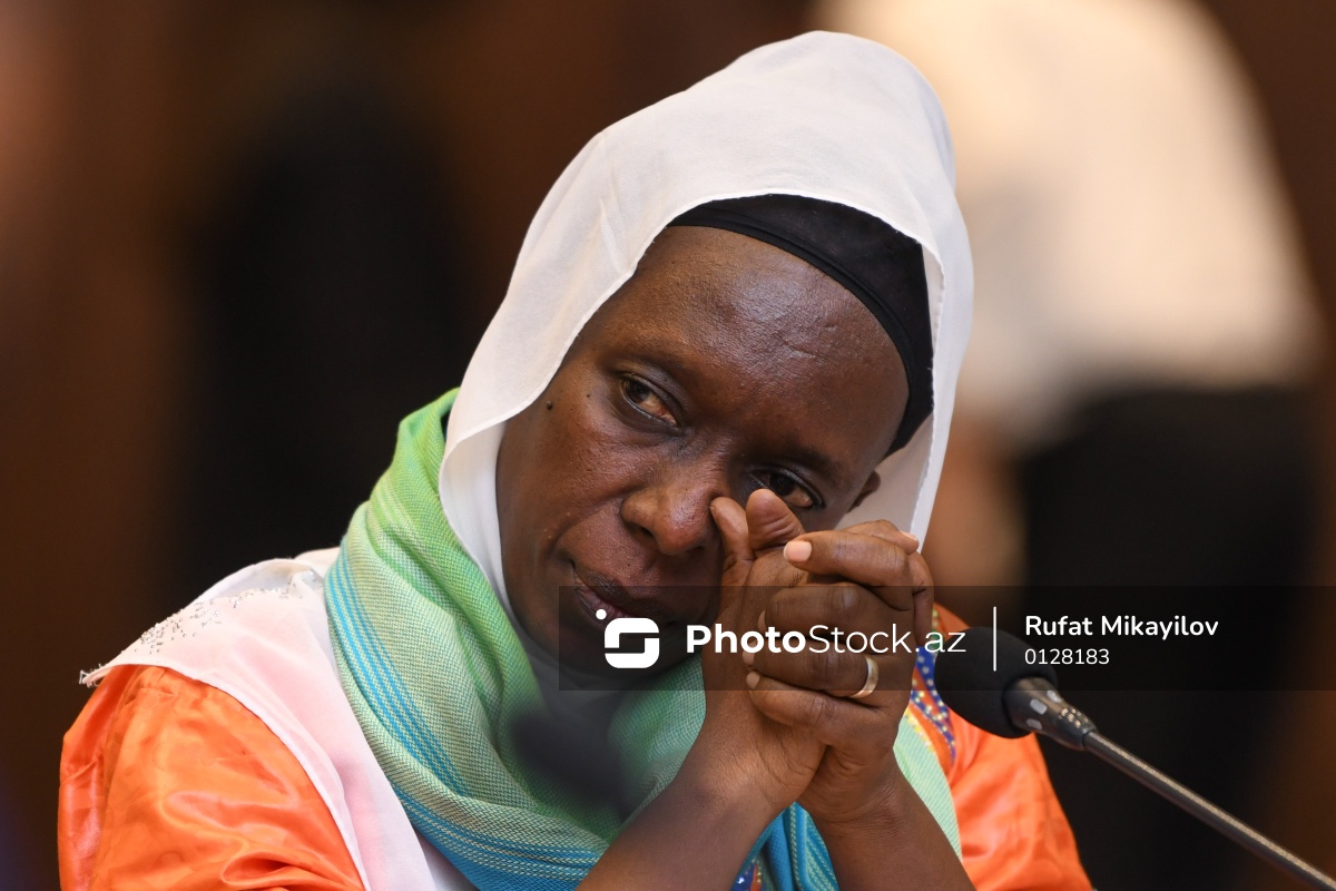 Bakıda keçirilən "Belçika müstəmləkəçiliyi: Tanınma və Məsuliyyət" adlı beynəlxalq konfransda iştirak edən Reparasiyalar üzrə Parlament Komissiyasının üzvü, burundili jurnalist Aline Dusabe.