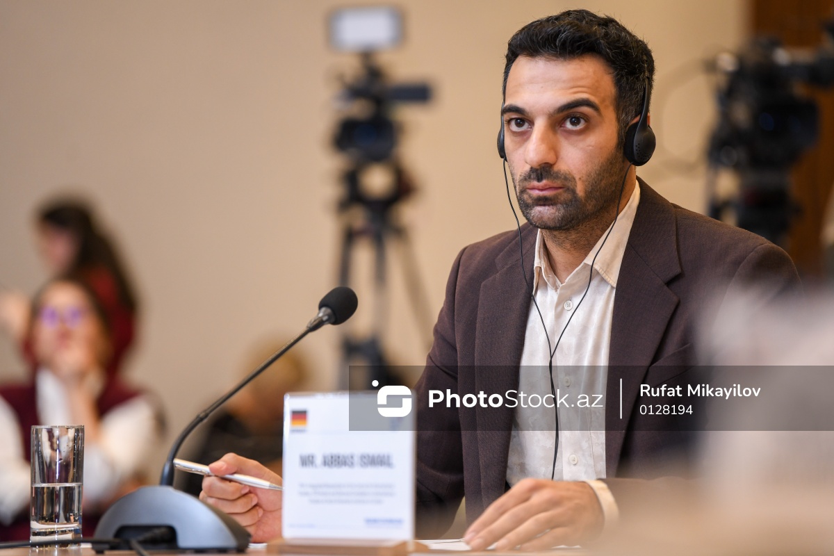 Bakıda keçirilən "Belçika müstəmləkəçiliyi: Tanınma və Məsuliyyət" adlı beynəlxalq konfransda iştirak edən Lissabon Universitetinin nəzdindəki Beynəlxalq Araşdırmalar Mərkəzində doktorant və almaniyalı tədqiqatçı Abbas İsmail.
