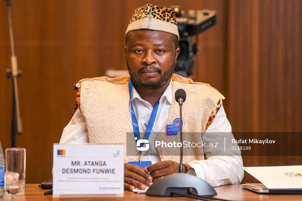 Bakıda keçirilən "Belçika müstəmləkəçiliyi: Tanınma və Məsuliyyət" adlı beynəlxalq konfransda iştirak edən Kesmonds Beynəlxalq Universitetinin prezidenti, professor, həkim və təhsil sahəsində ekspert, kamerunlu Atanqa Desmond Funvi.