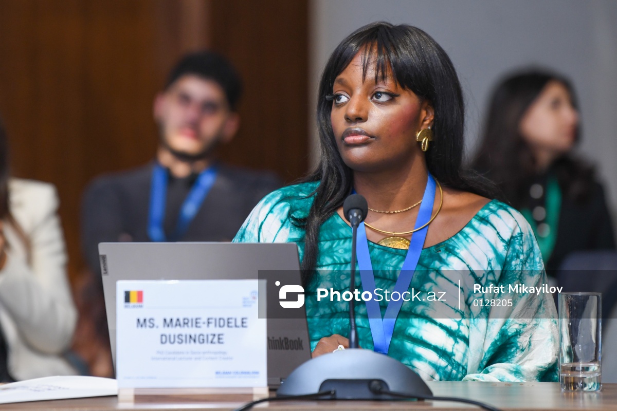 Bakıda keçirilən "Belçika müstəmləkəçiliyi: Tanınma və Məsuliyyət" adlı beynəlxalq konfransda iştirak edən Sosial antropologiya üzrə doktorant, beynəlxalq konfranslar məruzəçisi və məzmun yaradıcısı Mari Fidel Dusingize.