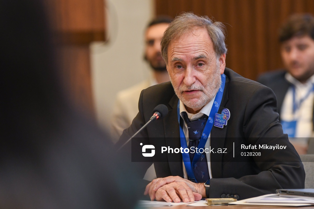 Bakıda keçirilən "Belçika müstəmləkəçiliyi: Tanınma və Məsuliyyət" adlı beynəlxalq konfransda iştirak edən Fransadan olan jurnalist Jan-Mişel Brun.