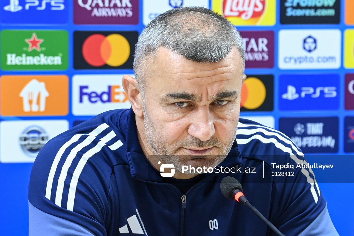 "Qarabağ" futbol klubunun mətbuat konfransında iştirak edən klubun baş məşqçisi Qurban Qurbanov.