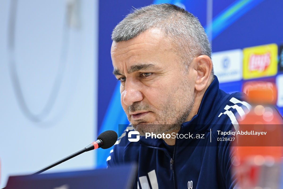 "Qarabağ" futbol klubunun mətbuat konfransında iştirak edən klubun baş məşqçisi Qurban Qurbanov.
