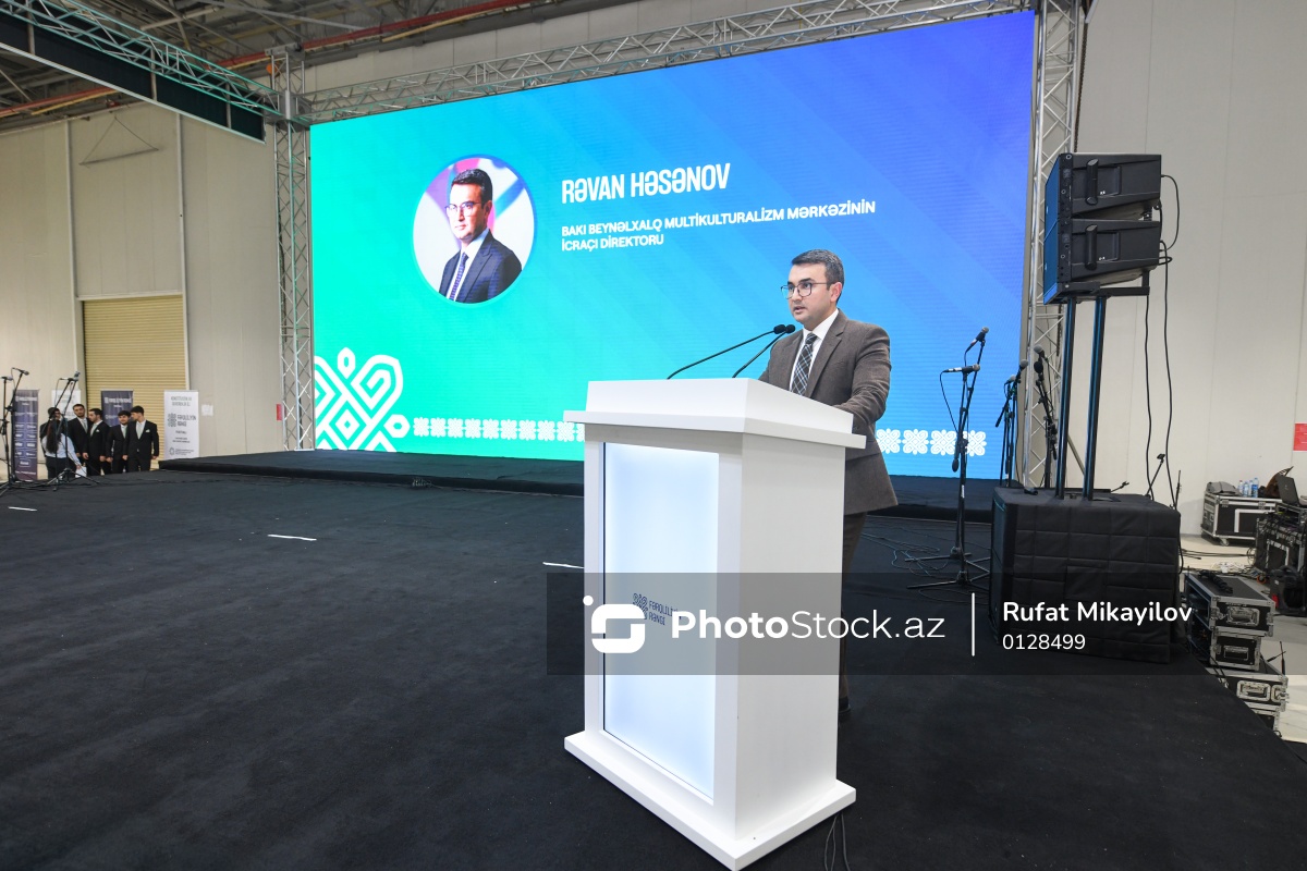 “Fərqliliyin rəngi” festivalında çıxış edən Bakı Beynəlxalq Multikulturalizm Mərkəzinin icraçı direktoru Rəvan Həsənov.