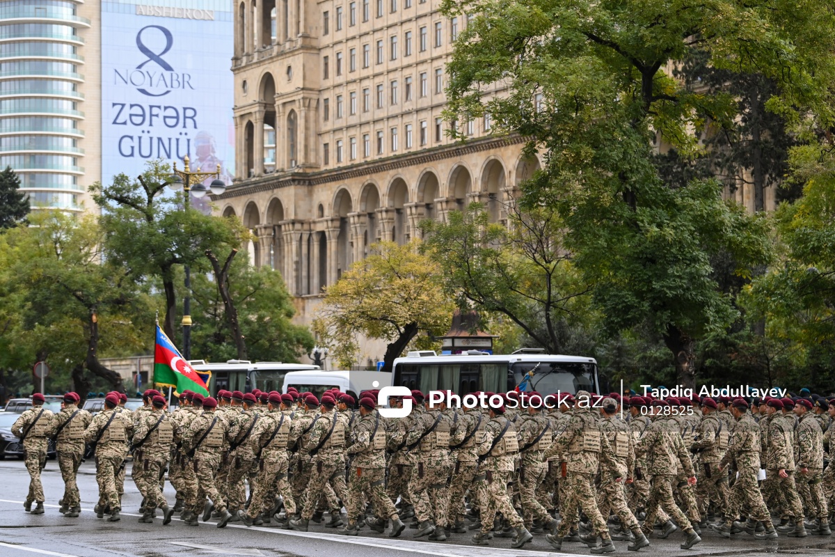 Azərbaycan Respublikası Daxili İşlər Nazirliyinin (DİN) Daxili Qoşunlarının Xüsusi Təyinatlı bölmələrinin hərbi qulluqçularından ibarət parad heyəti.