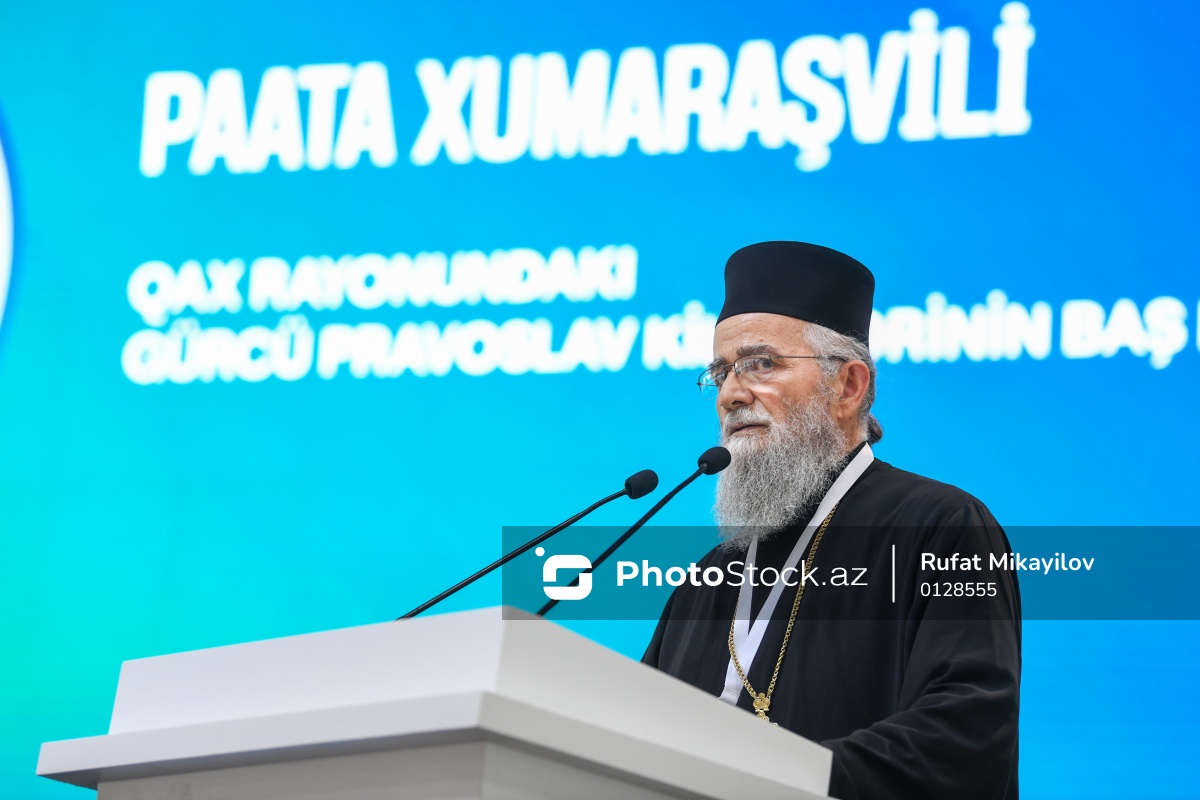“Fərqliliyin rəngi” festivalında çıxış edən Qax Rayonundakı Gürcü Provoslav Kilsələrinin Baş Keşişi Paata Xumaraşvili.