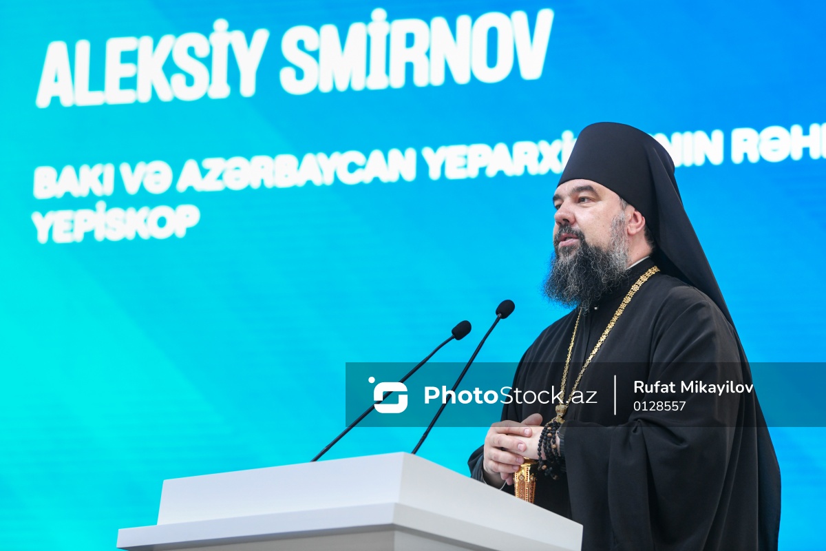 “Fərqliliyin rəngi” festivalında çıxış edən Rus Pravoslav Kilsəsinin Bakı və Azərbaycan Yeparxiyasının rəhbəri Aleksiy Smirnov.