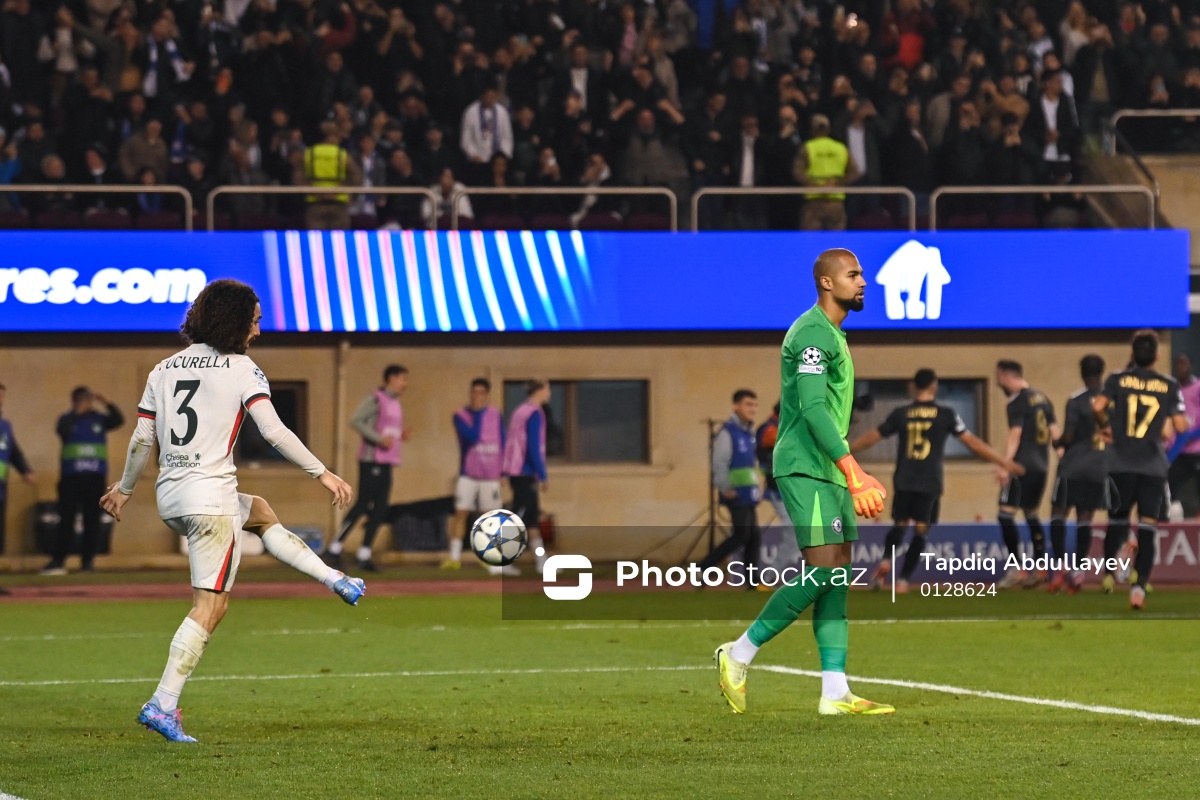 05.11.2025 Tofiq Bəhramov adına Respublika stadionu, UEFA Çempionlar Liqasının “Qarabağ” - "Çelsi" oyununda "Çelsi” komandasının oyunçuları Mark Kukurelya (solda) və Robert Sançes (sağda).