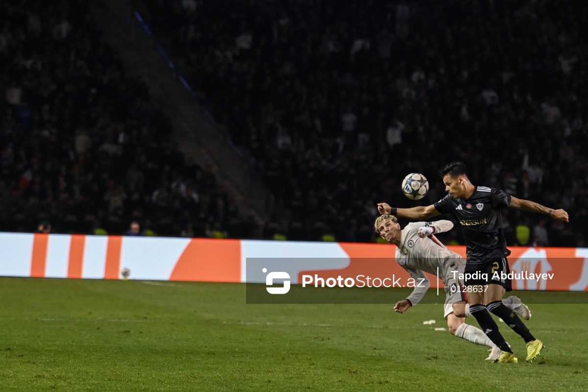 05.11.2025 Tofiq Bəhramov adına Respublika stadionu, UEFA Çempionlar Liqasının “Qarabağ” - "Çelsi" oyununda "Çelsi” komandasının oyunçusu Alexandro Qarnaço (solda) və "Qarabağ” komandasının oyunçusu Mateus Silva (sağda) mübarizəsi.