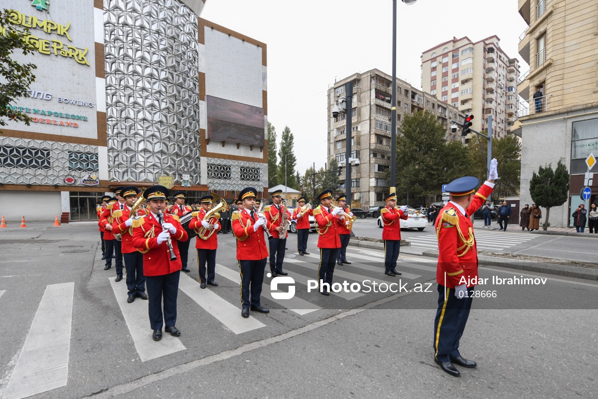 Bakıda 8 Noyabr - Zəfər Günü münasibətilə hərbi orkestrlərin müşayiəti ilə Azərbaycan Silahlı Qüvvələrinin Quru Qoşunlarının zəfər yürüşü başlayıb. Əvvəlcə Azərbaycanın Ümummilli Lideri Heydər Əliyevin, eləcə də ölkənin ərazi bütövlüyü uğrunda canından keçmiş şəxslərin xatirəsi birdəqiqəlik sükutla yad edilib. Zəfər yürüşü "Olimpik Star" İdman və Əyləncə Mərkəzi - Səməd Vurğun küçəsi - Zabitlər parkı - Bakı Dövlət Sirki - Heydər Əliyev Sarayı - İmadəddin Nəsimi heykəli - Neftçilər prospekti istiqamətlərini əhatə edir. Yürüşlərdə "Müzəffər Ali Baş Komandan!", "Zəfərin mübarək, Azərbaycan!", "Şəhidlər ölməz, Vətən bölünməz", "Qarabağ Azərbaycandır!" və başqa şüarlar səsləndirilir.