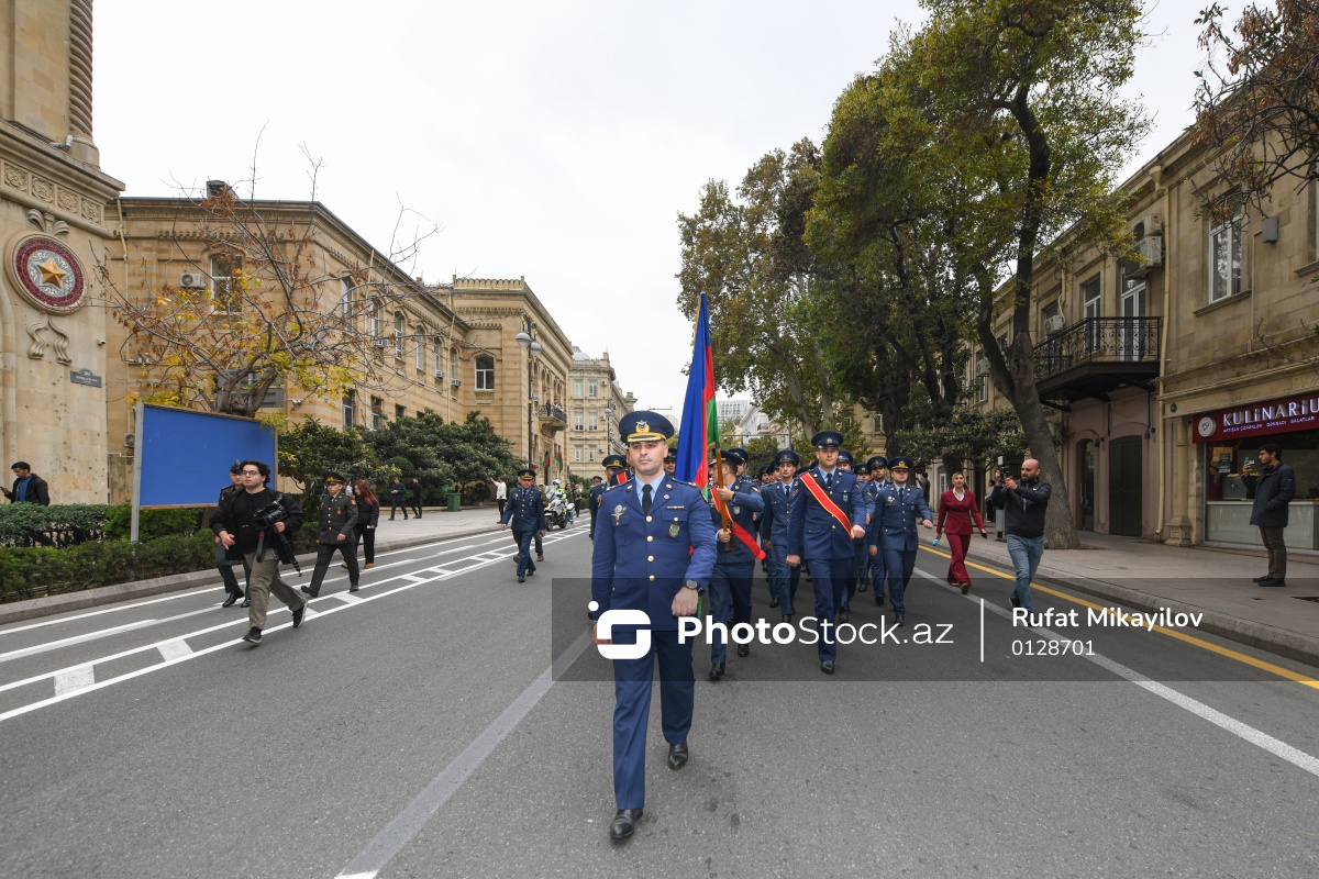Bakıda 8 Noyabr - Zəfər Günü münasibətilə hərbi orkestrlərin müşayiəti ilə Azərbaycan Hərbi Hava Qüvvələrinin zəfər yürüşü başlayıb. Əvvəlcə Azərbaycanın Ümummilli Lideri Heydər Əliyevin, eləcə də ölkənin ərazi bütövlüyü uğrunda canından keçmiş şəxslərin xatirəsi birdəqiqəlik sükutla yad edilib. Zəfər yürüşü Şəhidlər xiyabanı - "Alov Qüllələri" Kompleksi - "İçərişəhər" metrosu - Qala Qapısı - Azərbaycan Dövlət Kukla teatrı - Azneft dairəsi - Bəhram Gur heykəli istiqamətlərini əhatə edir. Yürüşlərdə "Müzəffər Ali Baş Komandan!", "Zəfərin mübarək, Azərbaycan!", "Şəhidlər ölməz, Vətən bölünməz", "Qarabağ Azərbaycandır!" və başqa şüarlar səsləndirilir.