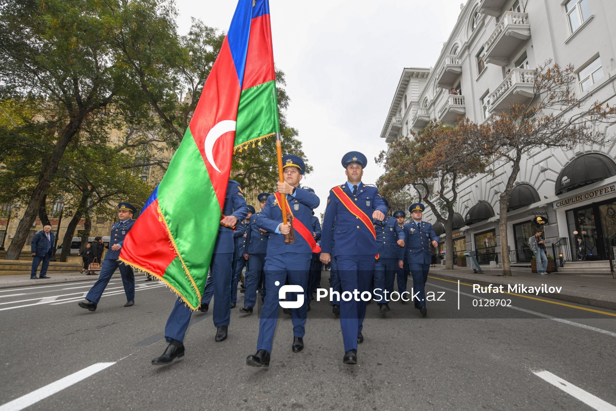 Bakıda 8 Noyabr - Zəfər Günü münasibətilə hərbi orkestrlərin müşayiəti ilə Azərbaycan Hərbi Hava Qüvvələrinin zəfər yürüşü başlayıb. Əvvəlcə Azərbaycanın Ümummilli Lideri Heydər Əliyevin, eləcə də ölkənin ərazi bütövlüyü uğrunda canından keçmiş şəxslərin xatirəsi birdəqiqəlik sükutla yad edilib. Zəfər yürüşü Şəhidlər xiyabanı - "Alov Qüllələri" Kompleksi - "İçərişəhər" metrosu - Qala Qapısı - Azərbaycan Dövlət Kukla teatrı - Azneft dairəsi - Bəhram Gur heykəli istiqamətlərini əhatə edir. Yürüşlərdə "Müzəffər Ali Baş Komandan!", "Zəfərin mübarək, Azərbaycan!", "Şəhidlər ölməz, Vətən bölünməz", "Qarabağ Azərbaycandır!" və başqa şüarlar səsləndirilir.