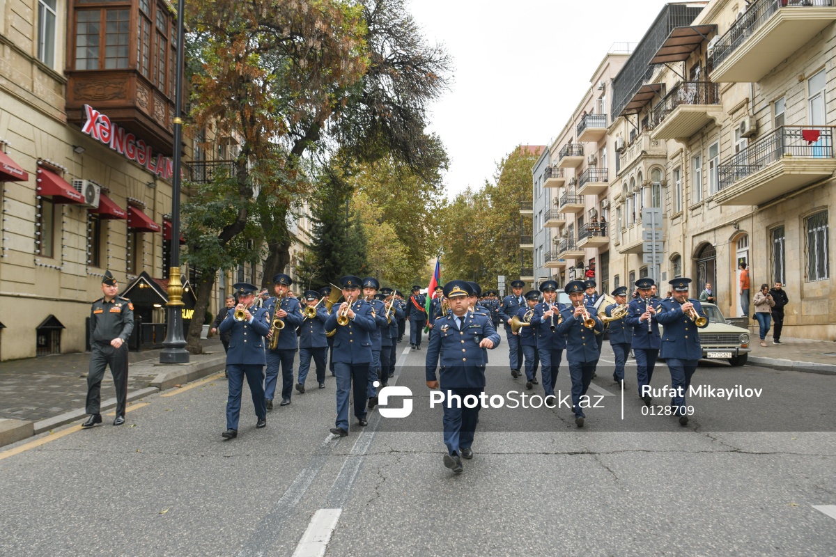 Bakıda 8 Noyabr - Zəfər Günü münasibətilə hərbi orkestrlərin müşayiəti ilə Azərbaycan Hərbi Hava Qüvvələrinin zəfər yürüşü başlayıb. Əvvəlcə Azərbaycanın Ümummilli Lideri Heydər Əliyevin, eləcə də ölkənin ərazi bütövlüyü uğrunda canından keçmiş şəxslərin xatirəsi birdəqiqəlik sükutla yad edilib. Zəfər yürüşü Şəhidlər xiyabanı - "Alov Qüllələri" Kompleksi - "İçərişəhər" metrosu - Qala Qapısı - Azərbaycan Dövlət Kukla teatrı - Azneft dairəsi - Bəhram Gur heykəli istiqamətlərini əhatə edir. Yürüşlərdə "Müzəffər Ali Baş Komandan!", "Zəfərin mübarək, Azərbaycan!", "Şəhidlər ölməz, Vətən bölünməz", "Qarabağ Azərbaycandır!" və başqa şüarlar səsləndirilir.