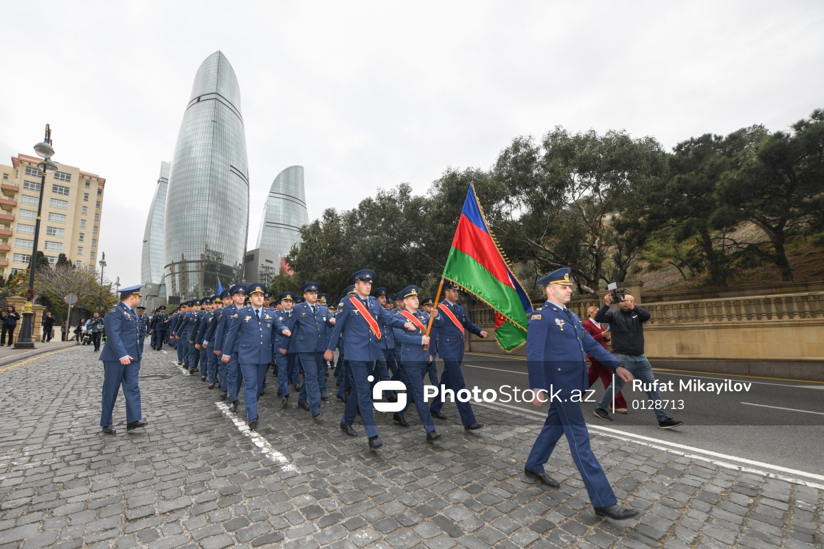 Bakıda 8 Noyabr - Zəfər Günü münasibətilə hərbi orkestrlərin müşayiəti ilə Azərbaycan Hərbi Hava Qüvvələrinin zəfər yürüşü başlayıb. Əvvəlcə Azərbaycanın Ümummilli Lideri Heydər Əliyevin, eləcə də ölkənin ərazi bütövlüyü uğrunda canından keçmiş şəxslərin xatirəsi birdəqiqəlik sükutla yad edilib. Zəfər yürüşü Şəhidlər xiyabanı - "Alov Qüllələri" Kompleksi - "İçərişəhər" metrosu - Qala Qapısı - Azərbaycan Dövlət Kukla teatrı - Azneft dairəsi - Bəhram Gur heykəli istiqamətlərini əhatə edir. Yürüşlərdə "Müzəffər Ali Baş Komandan!", "Zəfərin mübarək, Azərbaycan!", "Şəhidlər ölməz, Vətən bölünməz", "Qarabağ Azərbaycandır!" və başqa şüarlar səsləndirilir.