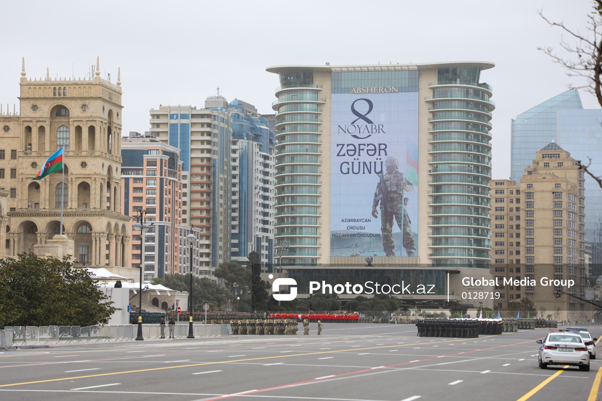 Bakıda noyabrın 8-də Zəfər Gününün 5-ci ildönümünə həsr olunmuş hərbi paradın baş məşqi keçirilib. Məşqə paradda iştirak edəcək Azərbaycan Ordusunun şəxsi heyəti, hərbi texnikası cəlb olunub. Hazırlıq məşqləri zamanı aviasiya vasitələrinin uçuşları, avtomobil və döyüş texnikalarının, həmçinin gəmilərin müəyyən edilmiş marşrutlar üzrə hərəkəti və yerdəyişməsi icra olunur.