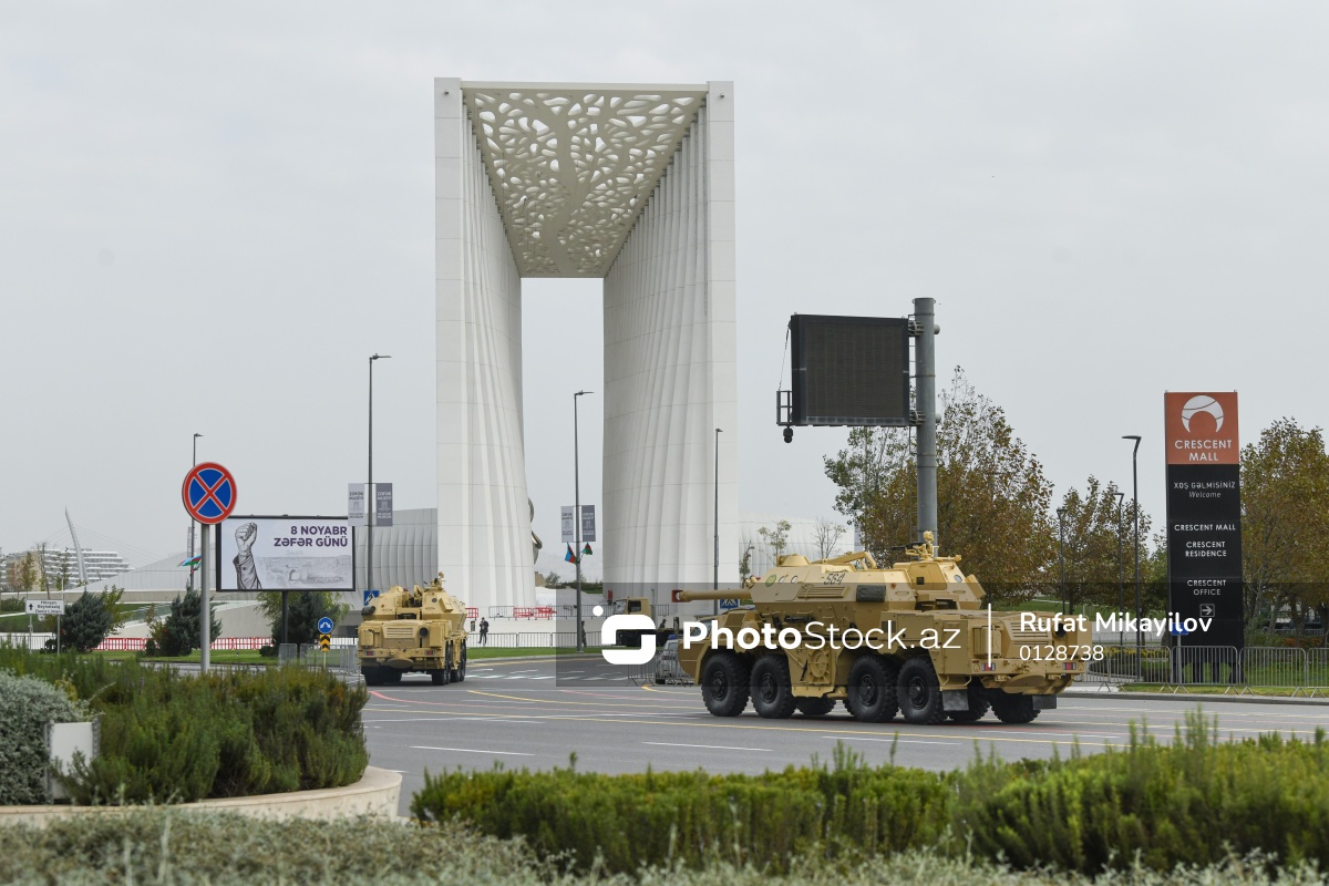 Bakıda Zəfər Gününün beşinci ildönümü münasibətilə təşkil olunan hərbi paradın məşq prosesində nümayiş olunan "DANA M1 CZ" zirehli transportyor.