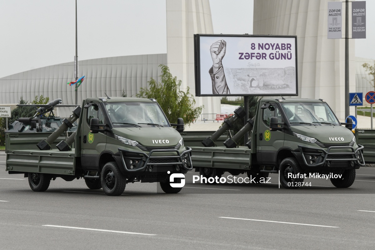 Bakıda Zəfər Gününün beşinci ildönümü münasibətilə təşkil olunan hərbi paradın məşq prosesində nümayiş olunan “Hero-120” sərbəst uçan döyüş sursatı.