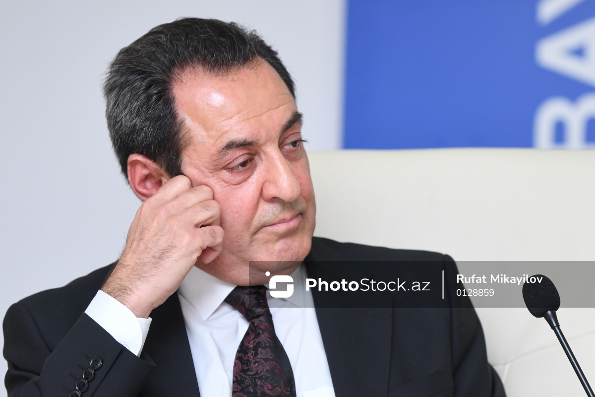 "Mediada Azərbaycan ədəbi dilinin normalarının düzgün tətbiqi" mövzusunda konfransda iştirak edən “Azərbaycan Televiziya və Radio Verilişləri” QSC-nin sədr müavini Rafiq Həşimov.
