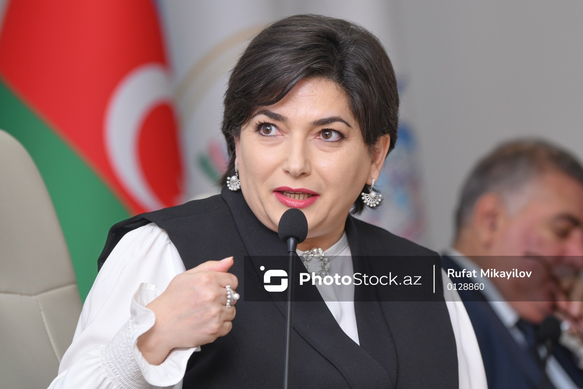 "Mediada Azərbaycan ədəbi dilinin normalarının düzgün tətbiqi" mövzusunda konfransda çıxış edən Azərbaycan Mətbuat Şurası sədrinin müavini Səadət Məmmədova.
