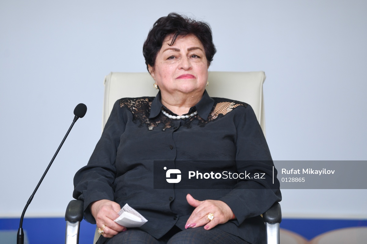 "Mediada Azərbaycan ədəbi dilinin normalarının düzgün tətbiqi" mövzusunda konfransda iştirak edən Azərbaycan Televiziyasının keçmiş aparıcısı, jurnalist Gülşən Əkbərova.